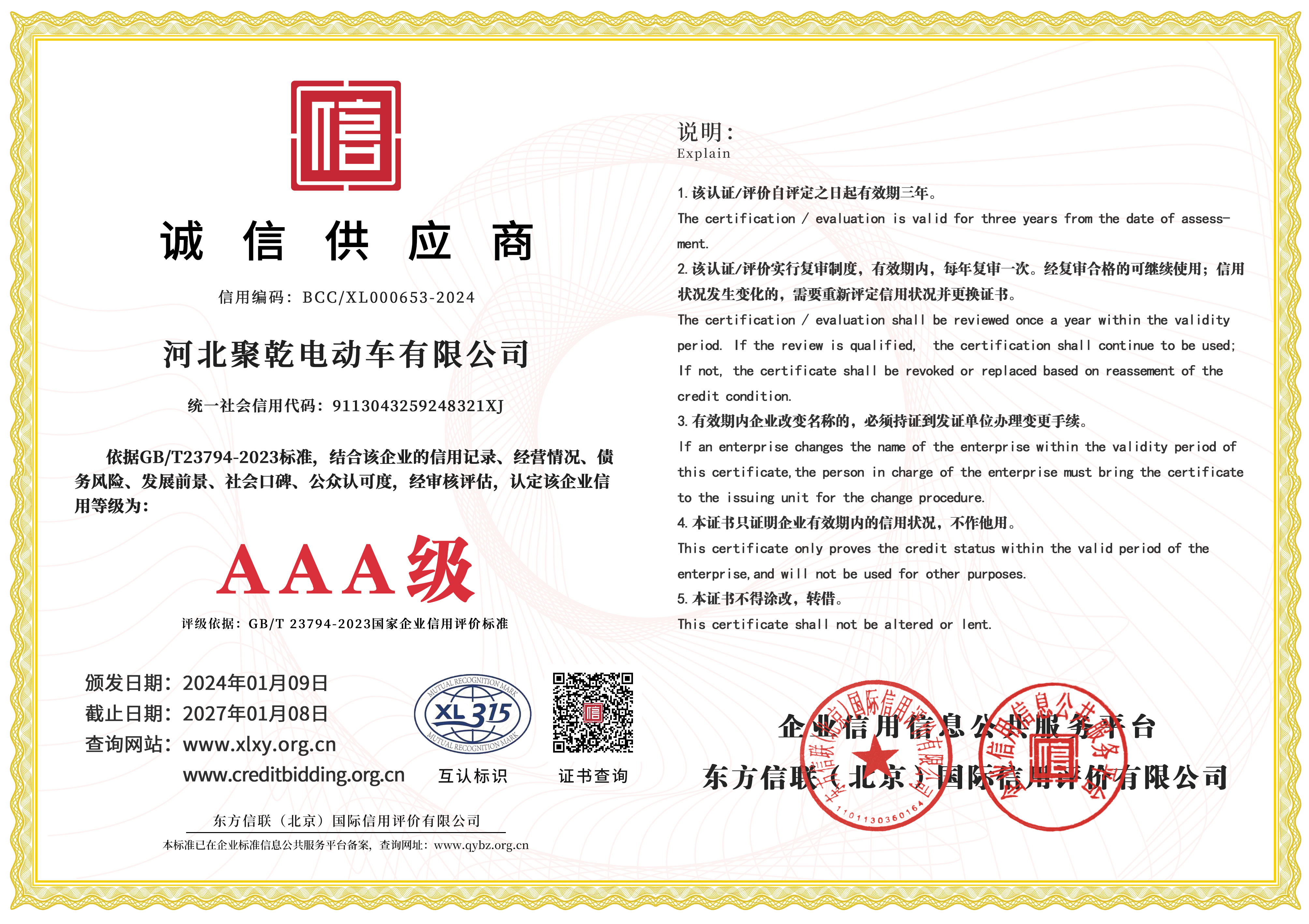企業(yè)信用評價AAA級信用企業(yè),AAA誠信供應商,AAA誠信經(jīng)理人,AAA誠信經(jīng)營示范企業(yè),AAA重質量守信用企業(yè),AAA重合同守信用企業(yè)